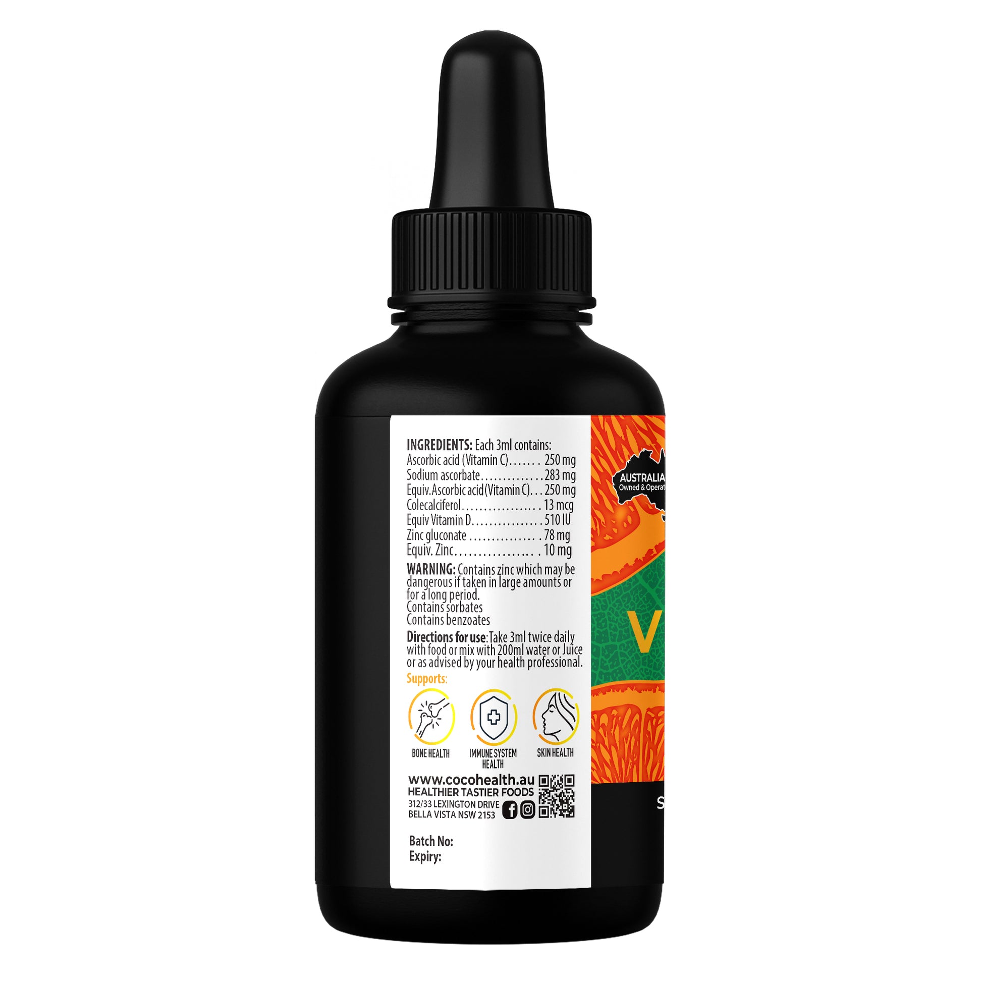Coco Health Triple Action Vit C,D and Zinc supports immune system health & helps