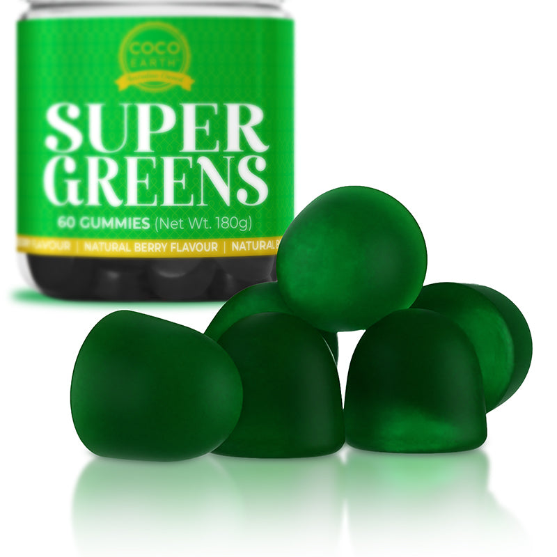 NEW Coco Health Super Greens Gummies Natural Berry Flavour 60pk, brought to you by Coco Earth, are an easy and convenient way to get your daily dose of vitamins and minerals, in one tasty gummy. Infused with Super Greens including barley grass extract, chlorella, artichoke, broccoli, kale, aloe juice, spinach, celery, parsley and spirulina, the all-natural Super Greens Gummies contain no artificial flavours or sweeteners and offer a potent, nutrient-packed boost for overall wellness and vitality.